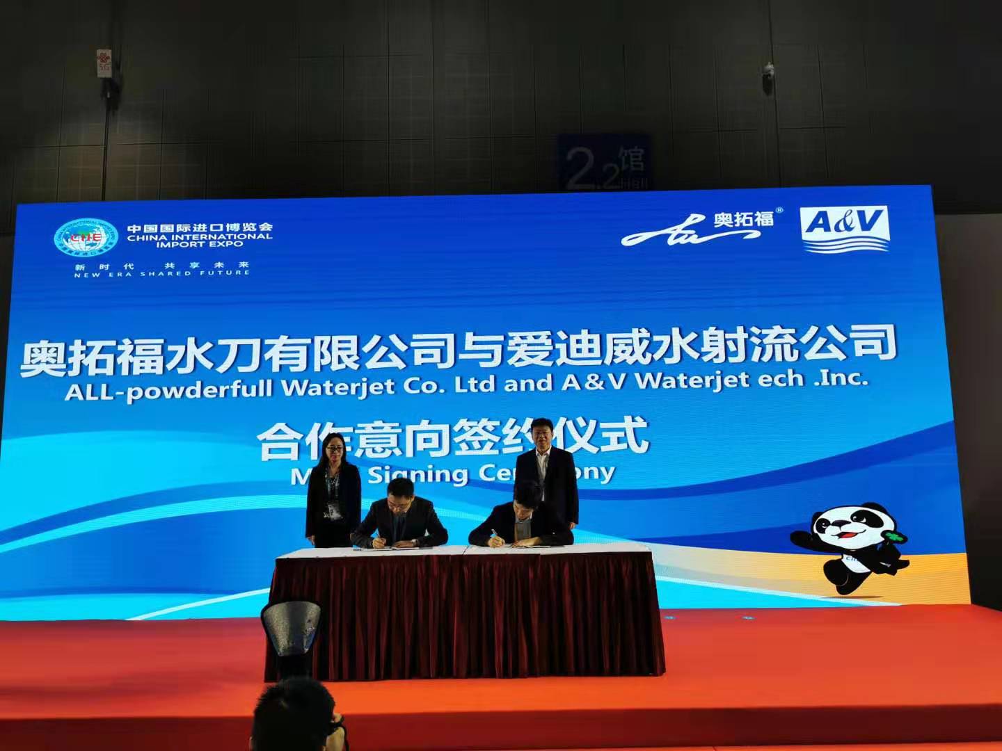 奥拓福战略合作伙伴——美国爱迪威(A&V)公司进博会现场刮起“水射流技术旋风”。
