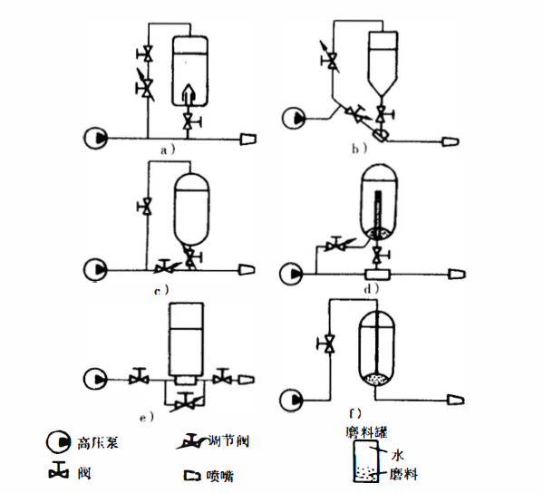 现行磨料水悬浮液射流大多采用上节所述旁路加压方法,所不同的只是工作压力及磨料混合方式。