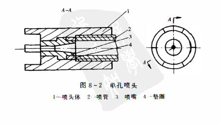 喷嘴是水射流设备的重要元件,它最终形成了水射流工况,同时又制约着系统的各个部件。 对于喷嘴型式,按形状区分有圆柱形喷嘴、扇形喷嘴、异形喷嘴等;按孔数区分有单孔喷嘴、多孔喷嘴;按压力区分有 低压喷嘴、高压喷嘴、超高压喷嘴等。