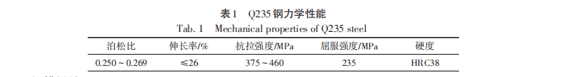 选用工业上常用的石榴石作磨料,主要粒径有60,80,120目3种。莫氏硬度为 7.5,努氏硬度为 1 350, 磨料密度为3.5 g/cm3。后混喷嘴砂管为标准配件,选用3种不同直径的砂管,分别为 0.8,1.0,1.5 mm。选用 油气储存运输常用的Q235钢作为切割材料,其力学性能如表1所示。试验过程中,保持磨料阀开度不变,调 节泵压、横移速度、靶距和入射角等参数,另外可以实现手动更换砂管以及磨料。