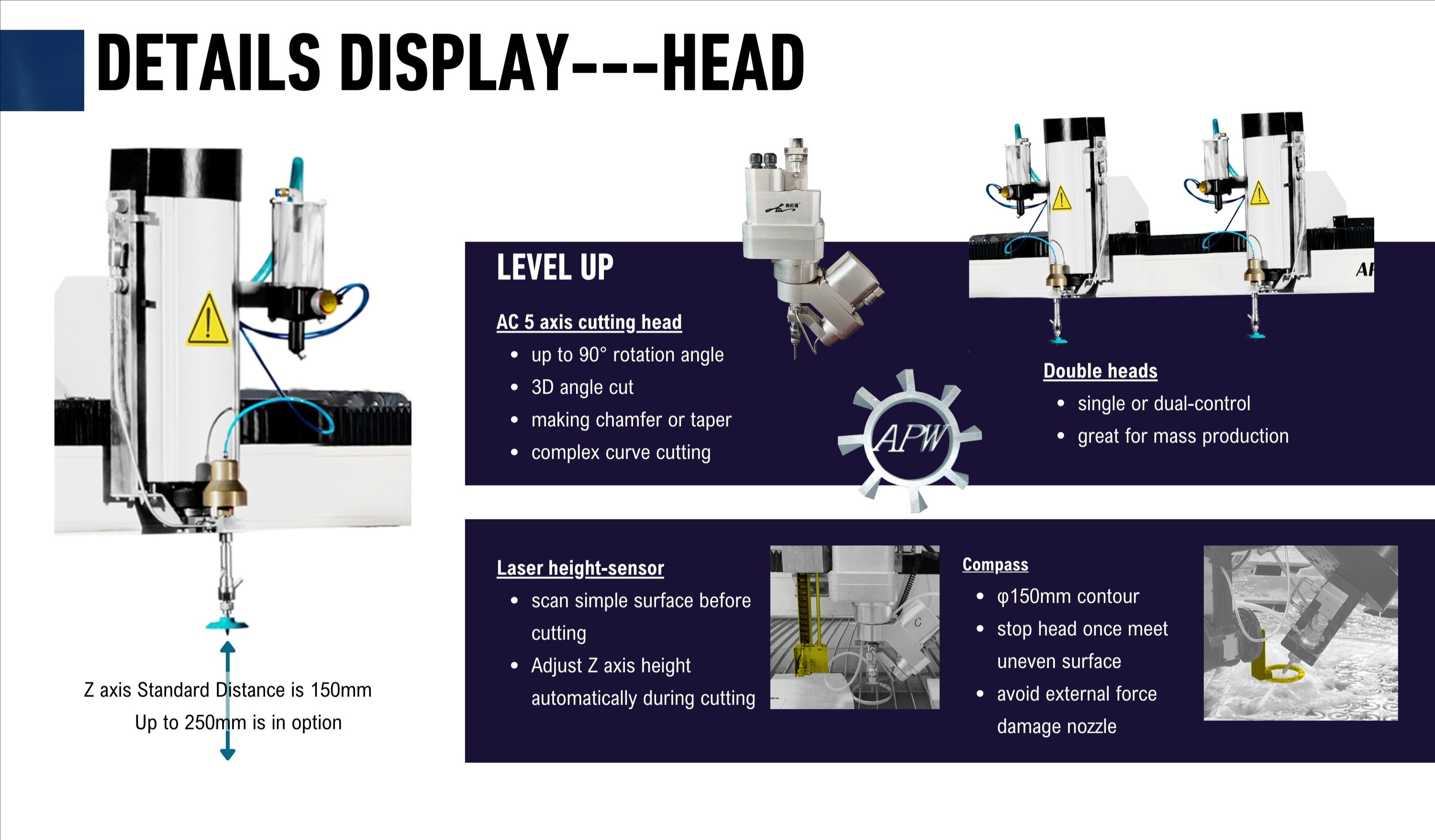 1、BP-JET 基础水切割刀头:3轴平面切割使用,适合通用切割任务,结构简单,维护方便,适合中小规模加工和快速原型制作。