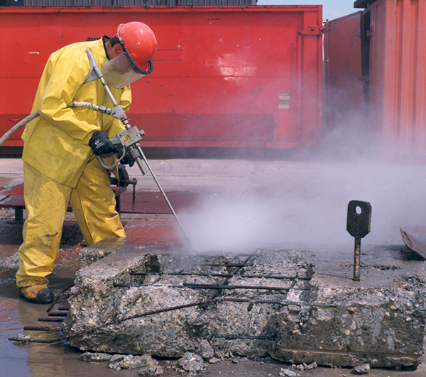 水射流用于混凝土工程方面的应用起始于20多年前。1972年,第一篇射流技术在混凝土工程中应用的论文,采用70MPa纯水射流对混凝土块进行切槽和钻孔试验,发现为达到可接受的工作效率,射流压 力必须达到380MPa,机组功率要达到370kW。