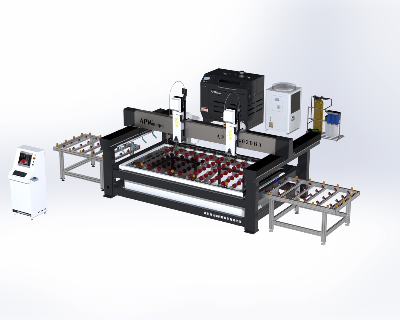 航空工业的一个重大需求是对大尺度曲面复合材料的机翼、尾翼和蒙皮的加工,由于机械加工对复合材料会产生分层、变形和劈裂等问题,美国波音公司已将超高压五轴联动水切割作为标准工艺,因此,催生了特大型水切割专用加工机床。
