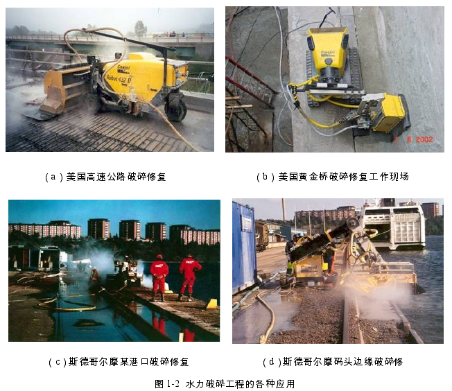 混凝土水力破碎设备是近十几年研究出来的一项新工艺和新技术,其中以美国、瑞典为代表的相关国家相继开发出道路表面破碎机,近年来又逐渐在大功率机组和装备执行机构方面升级完善,并迅速在欧美发达国家获得广泛应用