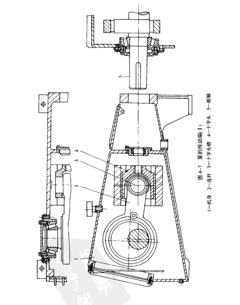 以曲柄连杆机构为传动端的机动往复泵,一方面通过这一机构把原动机的旋转运动转化为柱塞的往复运动,一方面则经它把原动机的机械能传递给被输送液体。