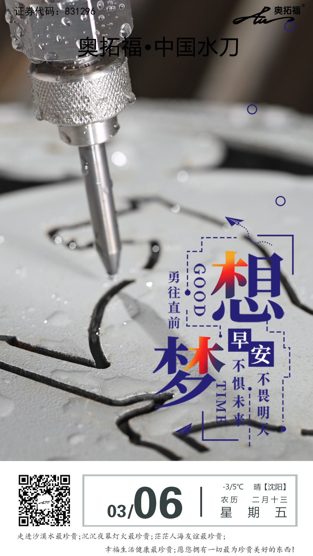 奥拓福公司成立以来,公司通过不断的与国际知名企业的紧密合作,积累了大量经验及技术,水刀产品经过不断的改进和优化,质量稳定,性能卓越,完全满足了市场期望。