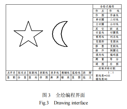 整套数控水刀软件包括全绘编程、参数设置、矢量位图、文件处理和帮助信息等几大模块。如图3 所示、在全绘编程界面中,可以如AutoCAD软件一样方便地绘制所需的加工图形,直接存储为数控文件;并且不需要描点 扫描图形也可以直接转换成数控文件;也可以人工直接绘制形成数控文件。保存图形后直接进行控制切割走刀。