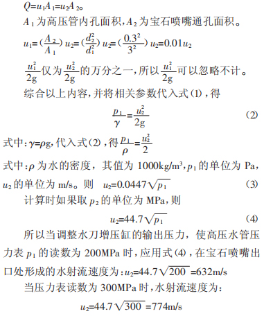 经过计算,从中让我们认识到可以通过调整水刀增压缸的输出压力,来控制水刀水射流速度,从而做到如何控制水射流的切割速度,以达到最大的切割效率和精度。