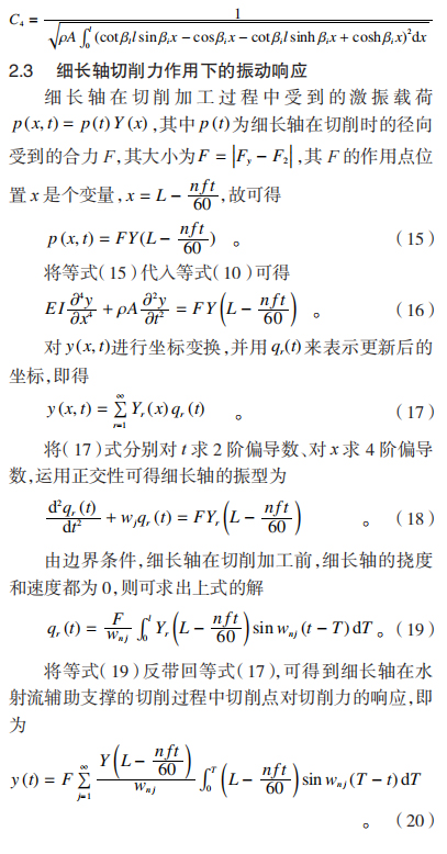 式中 : ρ 为细长轴的密度 ; A 为细长轴横截面积 ; E 为细长轴的材料弹性模量 ; I 为细长轴截面对中性轴的惯性矩。
