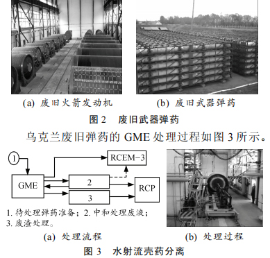 在乌克兰水射流壳药分离技术已得到了广泛的应用,形成了弹药前期处理、壳药分离、三废处理在内的全套自动化装备,降低了废渣、废液、废气的排放,保护了环境。