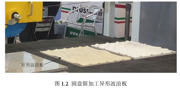 锯能够对圆柱柱座进行撇底加工、对倒角进行切角加工、对斜多面体进行撇面加工、也可用于圆弧板及柱头的加工。使用铣刀能够进行浮雕、文字雕刻(如墓碑刻字)等,甚至能够用圆盘锯雕刻异形波浪板,如图1.2所示;五轴数控加工中心能够使用圆盘锯加工如旋转楼梯等具有扭曲面的变形几何体,能够使用铣刀进行三维雕刻,如人像雕刻、动物雕刻、艺术品雕刻等。