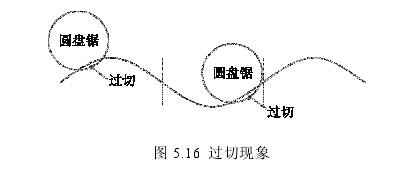 和凸型竖曲线处都会出现图5.16所示的过切现象。为解决此问题,需对圆盘锯